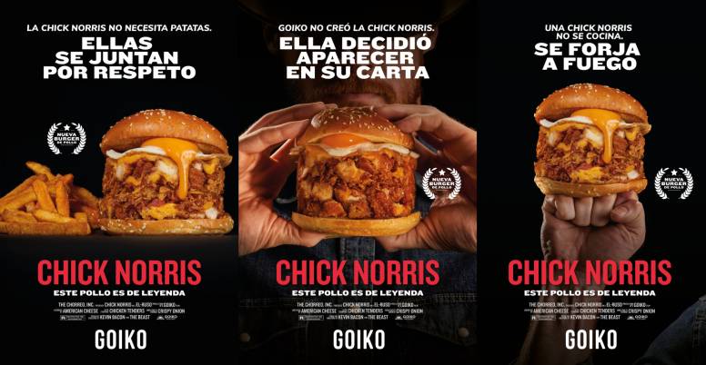 “Si las burgers más exitosas de Goiko se inspiran en personajes populares, nuestra burger de pollo tenía que homenajear a la leyenda, al inigualable, al poderoso Norris. Y a toda la iconografía de sus películas. Ha sido un placer trabajar en esta campaña, y más placer va a ser comerse la hamburguesa”, afirma Ángel Torres, director creativo ejecutivo y socio fundador de El Ruso de Rocky.