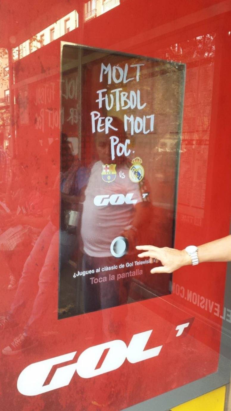 GolT ha conseguido que la porra de toda la vida, la que se hace cuando se acerca el clásico encuentro entre el FC Barcelona y el Real Madrid ya sea digital. Maxus, con la colaboración creativa de Tapsa |Young&Rubicam la ha convertido en una porra interactiva gracias a varias marquesinas situadas en el centro de sus ciudades en las que se puede votar el resultado del partido y el jugador más destacado. Durante el encuentro, y gracias a una innovadora aplicación instalada en varias marquesinas de autobús, los participantes podrán conocer los resultados de la porra a tiempo real, aumentando así la expectación. En definitiva, la acción está destinada a generar notoriedad, cercanía y empatía entre la afición con motivo de la celebración de uno de los encuentros futbolísticos más importantes de la Liga.