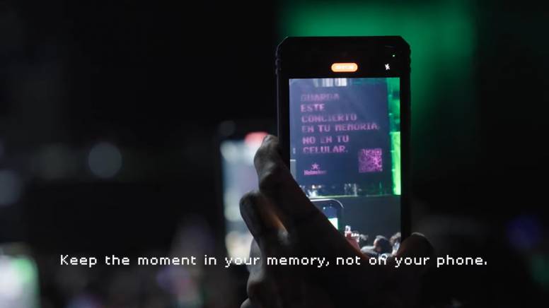 La iniciativa, de la agencia creativa LePub, consiste en la instalación de pantallas con tecnología de luz infrarroja que esconden mensajes invisibles al ojo humano, pero que pueden verse a través de la cámara del teléfono móvil. Así, cuando los asistentes graban la actuación, pueden ver el mensaje “Guarda este concierto en tu memoria, no en tu celular”.