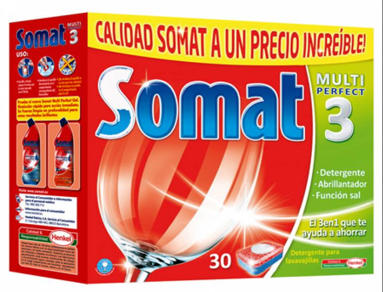 Henkel Ibérica entra en una nueva categoría donde no estaba presente hasta el momento: lavavajillas automático. Y lo hace bajo la marca Somat, una marca internacional con más de 40 años de historia y tecnología alemana que además fue la primera marca en crear en 1989 el detergente en forma de pastilla. El eslogan de Somat desde sus origenes fue: limpieza con un brillo garantizado.