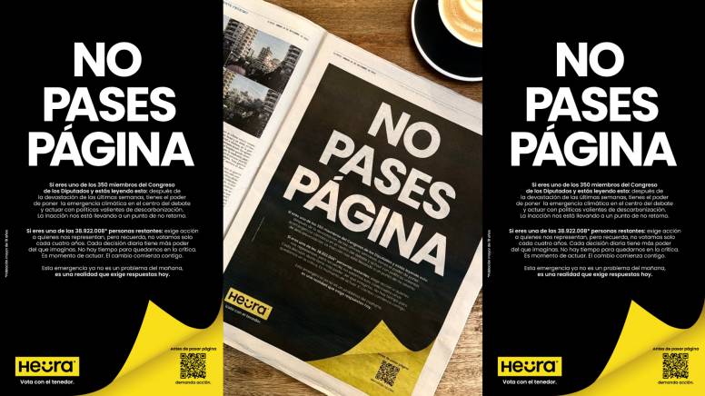 Este llamado se produce después del paso de la DANA por Valencia en un año en el que, por primera vez, los expertos predicen que se superará el umbral de 1,5ºC sobre los niveles preindustriales. En este contexto, Heura ha iniciado una campaña que ha empezado este fin de semana con un mensaje en el periódico generalista más leído del país y sus redes sociales para pedir a los políticos que “no pasen página”.