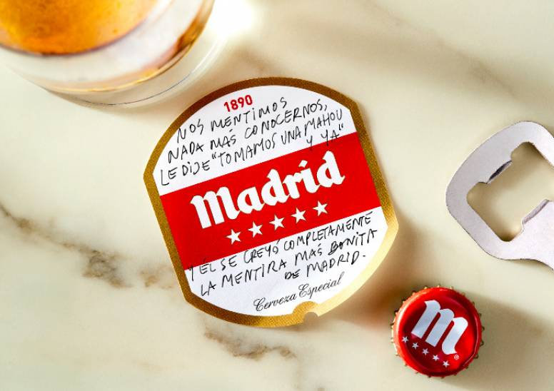 “Nos mentimos nada más conocernos, le dije ‘Tomamos una Mahou y ya’ y él se creyó completamente la mentira más bonita de Madrid”. Así narra uno de los tres microrrelatos que figuran en las etiquetas de la primera edición especial de Mahou la esencia de la campaña de “Madrid nos lía, Madrid nos encuentra”.