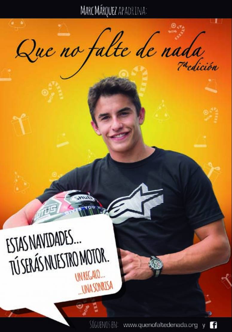 Honda participa de nuevo en el proyecto “Que no te falte de nada”, lleva trabajando con esta iniciativa infantil navideña desde 2009. Fue impulsada por un grupo de amigos hace siete años, donde promueven la recolecta y el reparto de más de 20.000 regalos entre los hospitales y centros de atención y protección al menor. En esta ocasión el padrino de la campaña será el bicampeón de MotoGP, Marc Márquez que sustituye a Andrés Iniesta.