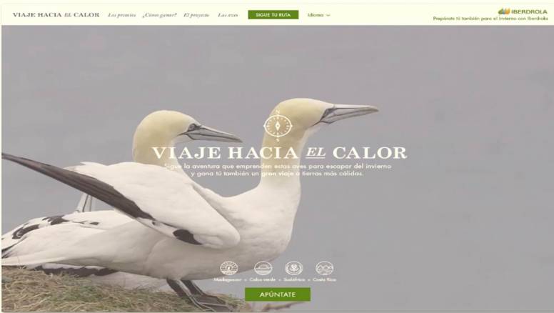 Iberdrola ha puesto en marcha una campaña de fidelización en la que invitan al usuario a seguir en directo la migración de un ave a través de la web viajehaciaelcalor.com, con la que los clientes podrán ganar un viaje valorado en 10.000 euros, entre otros premios.