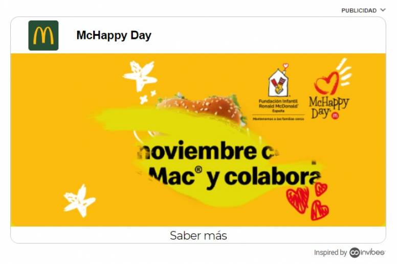 La agencia de medios de McDonald’s, OMD España, ha querido este año amplificar el alcance de la celebración del McHappy Day, para lo que ha contado con la colaboración entre otros partners, de Invibes Advertising. Ambas compañías han lanzado una original campaña display en formato in-feed, haciendo uso de un formato utilizado por primera vez en nuestro mercado, y que requiere de la interacción del usuario para descubrir el mensaje de la marca.