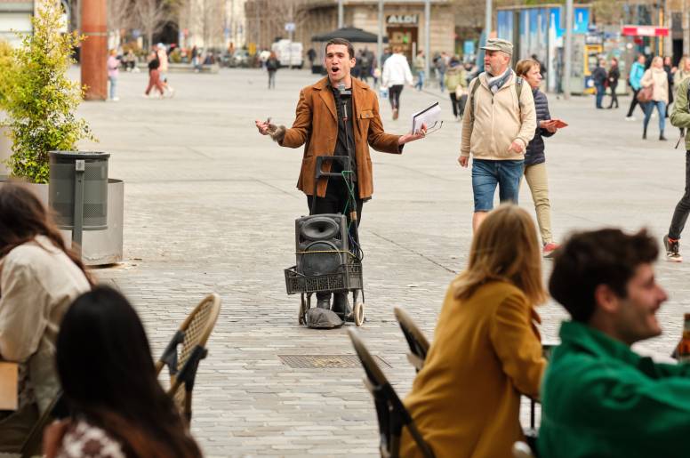 El actor se disfrazó de poeta callejero y recorrió las calles de Barcelona recitando sus versos, pasando desapercibido hasta que se paró en una terraza donde una treintena de personas disfrutaban de una cerveza Magna. Allí comenzó su show y tras el recital, se deshizo de su caracterización, revelando su verdadera identidad.