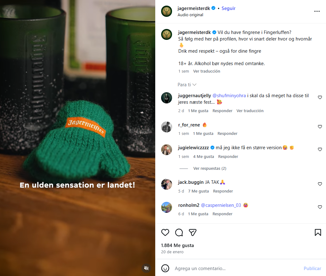 La marca vuelve a poner en valor uno de sus rasgos más reconocibles, beberse muy frío. Para ello, ha lanzado unos pequeños guantes de dedo para poder coger los chupitos helados de la bebida sin que el frío incomode
