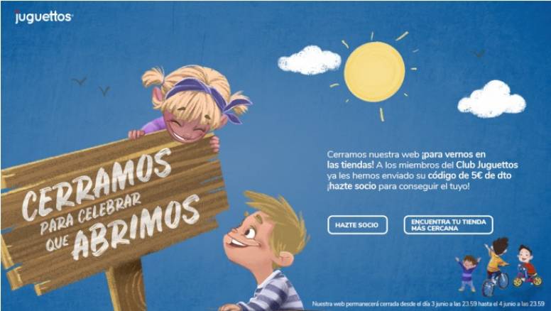 El canal de venta online de la compañía ha cerrado durante 24 horas en una activación inédita para festejar la apertura de 236 tiendas físicas con todas las medidas de seguridad, donde además habrá descuentos especiales para los socios del Club Juguettos