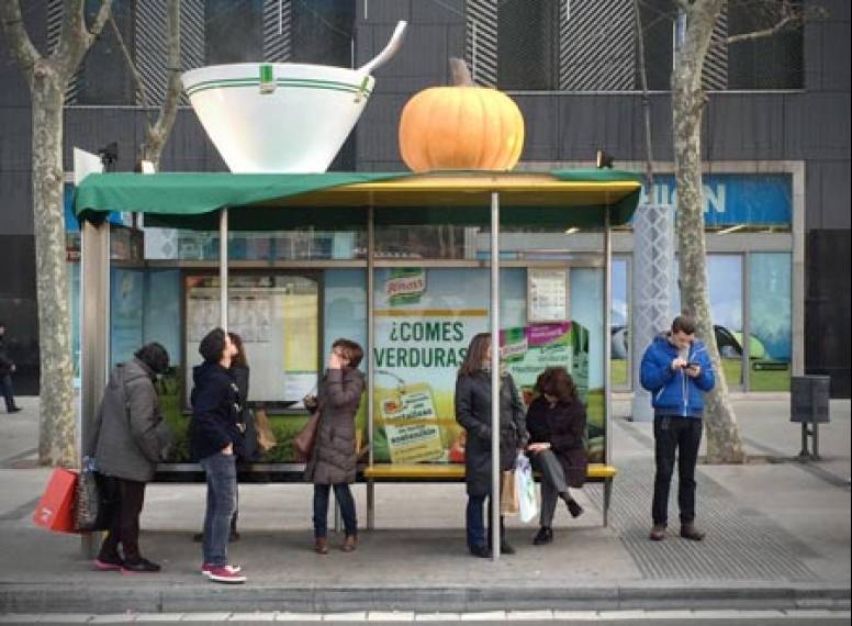 Con la colaboración de las agencias Havas SE, JCDecaux y Mindshare, la parada de autobús de esta concurrida zona de la Ciudad Condal se ha vinilado con los colores corporativos y productos de cremas de verduras Knorr. Asimismo, el techo de la misma figura ser una mesa cubierta con un mantel verde en la que reposa un tazón gigante de crema de verdura lista para consumir, junto con una cuchara y una calabaza de gran tamaño. El bol simula estar caliente gracias a una máquina instalada en su interior que desprende humo cada cierto tiempo para dar la sensación de que la taza está caliente.