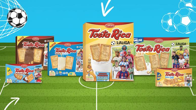 La marca de galletas ha anunciado sus nuevos paquetes en los que colabora con LaLiga. En toda la variedad de TostaRica (original, fibra, choco leche, choco blanco, chocoguay, mini go! y bizcochitos) se podrán encontrar dibujos de los equipos favoritos de los pequeños de la casa, además de optar a diferentes premios especiales.