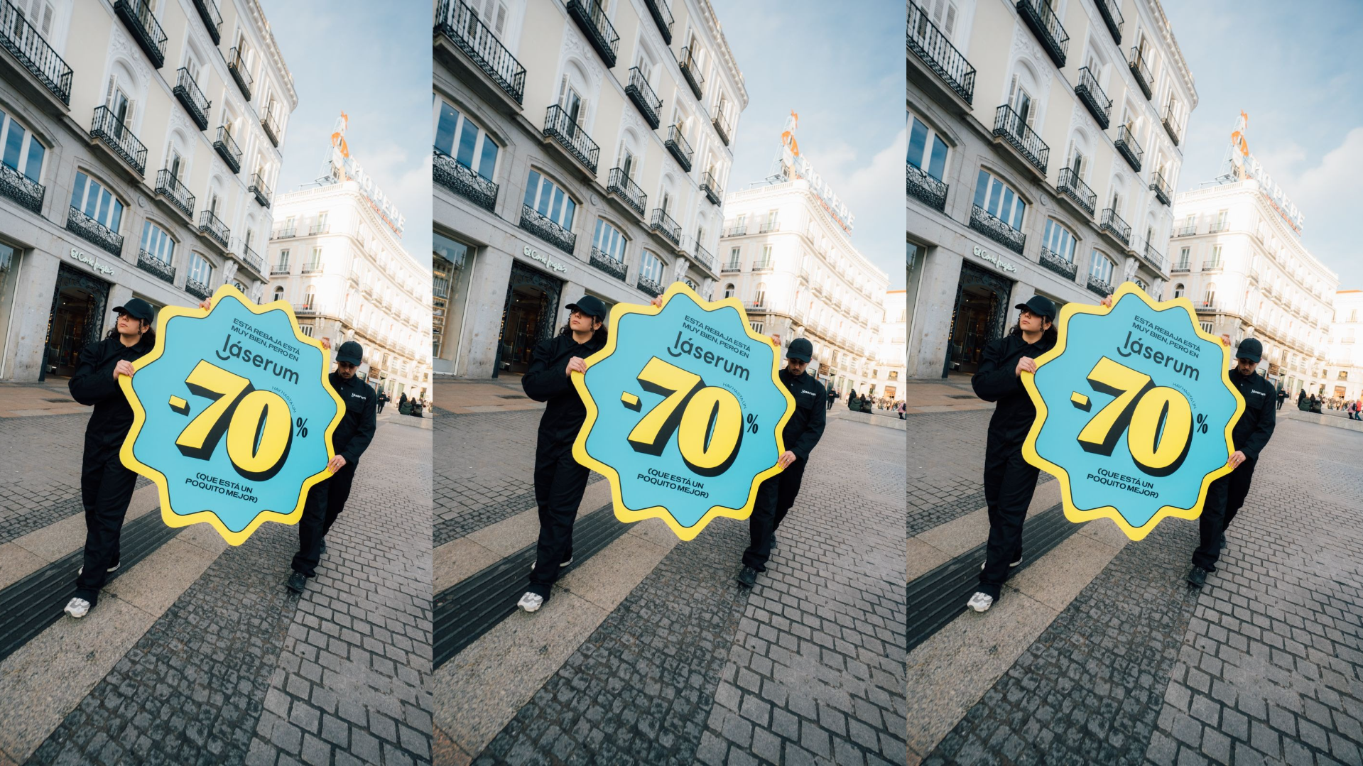En un contexto marcado por la saturación de mensajes comerciales durante las rebajas de enero, Láserum ha optado por un enfoque poco convencional para dar visibilidad a su oferta. La marca de depilación láser ha lanzado una acción de guerrilla en distintos puntos comerciales del centro de Madrid con la que busca destacar su descuento del 70% frente al aluvión de promociones que compiten por la atención del consumidor.