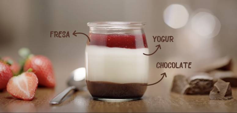 “Fresa, yogur y chocolate. Descubre el nuevo yogur Trío de Sabor de La Lechera”: Este es el copy del spot de la campaña. La nueva gama de yogures de la marca es una auténtica explosión de sabor, resultante de la combinación de tres sabores. La Lechera ofrece un yogur con fresa y chocolate y otro con manzana caramelizada y caramelo, ambos envasados con el vidrio reciclable de siempre.
