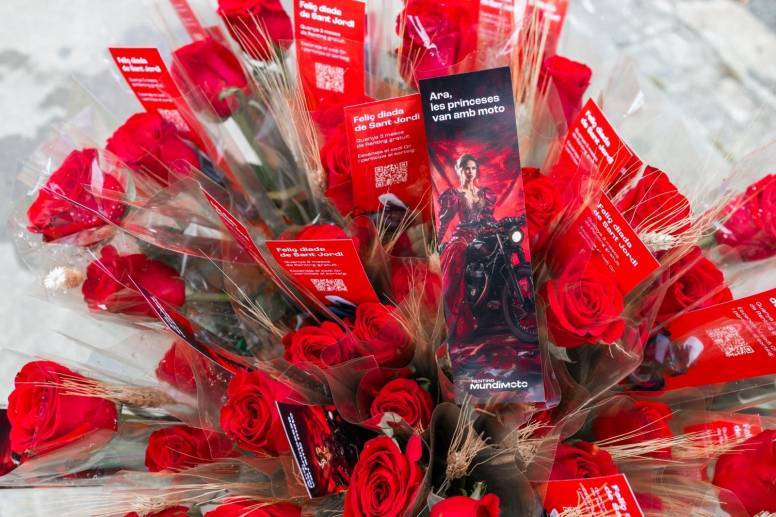 Además, la marca repartió también en lugares tan icónicos como Plaza España, Gran Vía y Francesc Macià, centenares de rosas y miles de marcapáginas, cada uno con un código QR que abría las puertas al sorteo de tres meses de renting de una Yamaha Nmax, todavía disponible en sus redes sociales.
