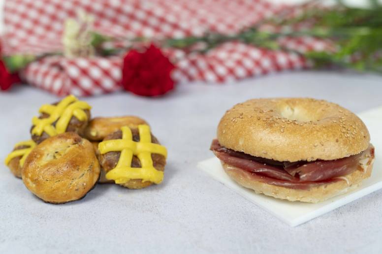 Tanto el pan de rosco con ajonjolí, que va relleno de jamón Tío Felipe; como las tradicionales rosquillas dulces, están realizadas por los panaderos y pasteleros del obrador propio que el Museo del Jamón posee en su central de Avenida de Córdoba.