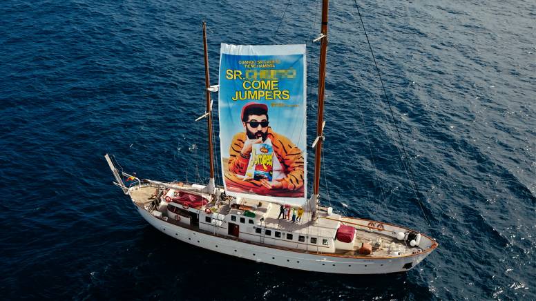 La marca ha reconvertido la lona publicitaria que fue retirada de Madrid en una vela de barco que ondea en medio del océano. Jumpers ha eliminado todo el contenido de su campaña con Sr. Cheeto