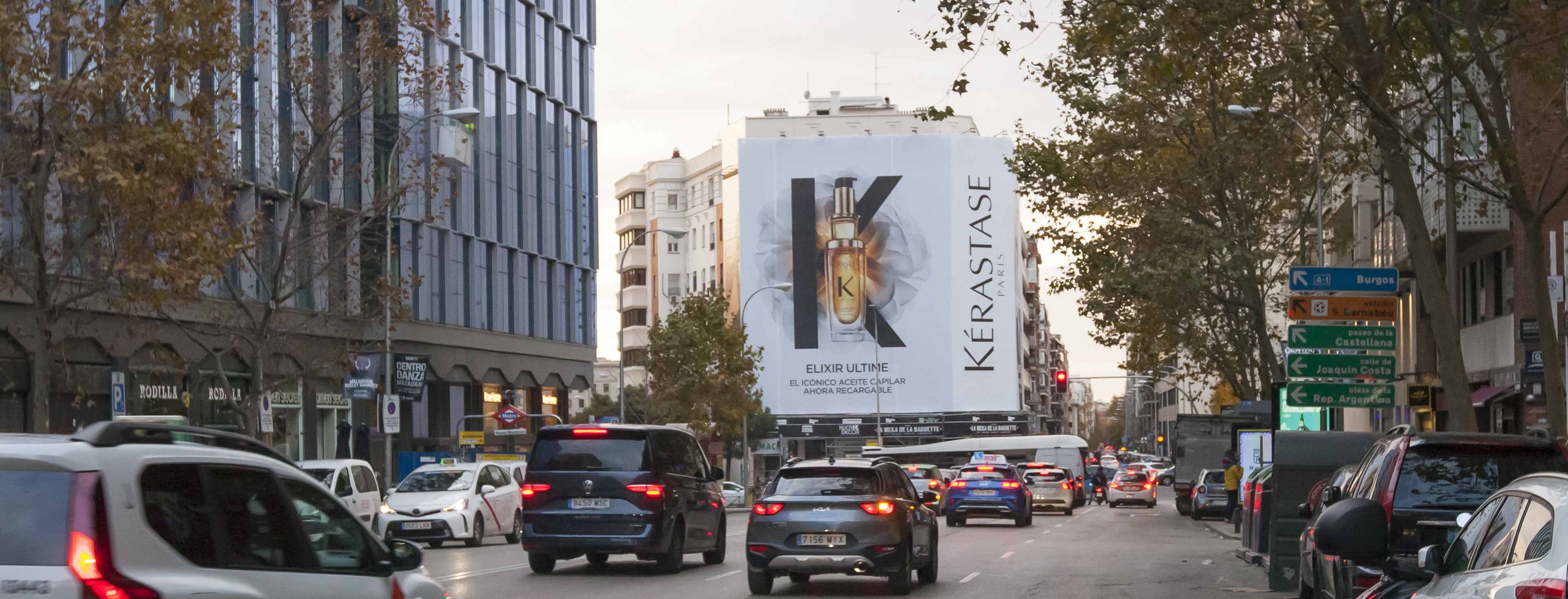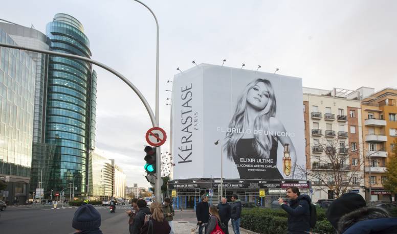 Madrid ha sido escenario este diciembre de una de las acciones de publicidad exterior más destacadas del mes con motivo de la campaña de Elixir Ultime, el tratamiento capilar premium de Kérastase. La iniciativa se ha materializado en la instalación de una lona de gran formato en la calle Raimundo Fernández Villaverde, junto a El Corte Inglés de Nuevos Ministerios, una ubicación estratégica por su alto tráfico peatonal y comercial.