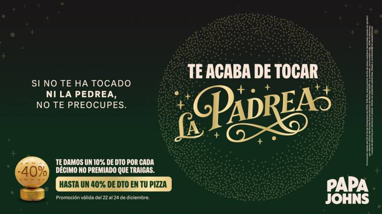 Cada año, millones de españoles compran números de Lotería de Navidad con la ilusión de escuchar el Gordo de San Ildefonso, solo para descubrir que, en la mayoría de los casos, sus décimos no resultan premiados. Tomando como referencia que el premio más bajo, La Pedrea, solo se entrega a unos 1.800 décimos en todo el país, Papa Johns ha decidido convertir esa mala suerte en una oportunidad de celebración gastronómica: nace ‘La Padrea’.