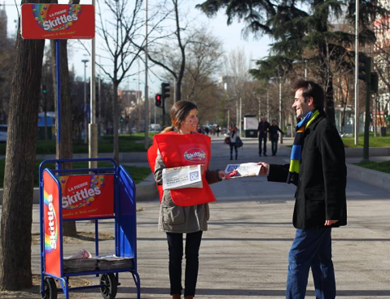 La campaña se ha reforzado con el acuerdo cerrado con el diario gratuito, 20minutos donde han customizado la portada con la noticia, “La fiebre Skittles invade la ciudad”. Además de la falsa portada, en Barcelona y Madrid se han entregado 270.000 muestras donde los mismos repartidores aparecían customizados como si se hubiesen contagiado de la #FiebreSkittles.
