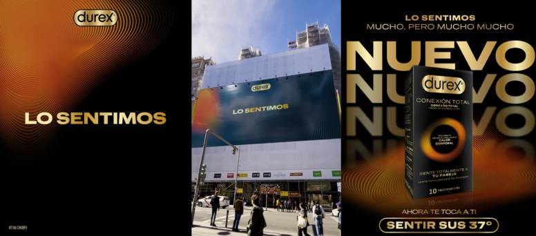 Las dudas llegaban a su fin al revelarse que, detrás de este misterio, estaba el lanzamiento del preservativo para sentir totalmente a tu pareja, hasta el calor corporal. Durex no estaba pidiendo perdón, está explicando cómo gracias a Conexión Total mejorarán las relaciones sexuales de las parejas españolas. Esta revelación se ha hecho a través del claim ‘Siente sus 37 grados’ con dos grandes lonas situadas en la Gran Vía madrileña, y un spot en televisión.