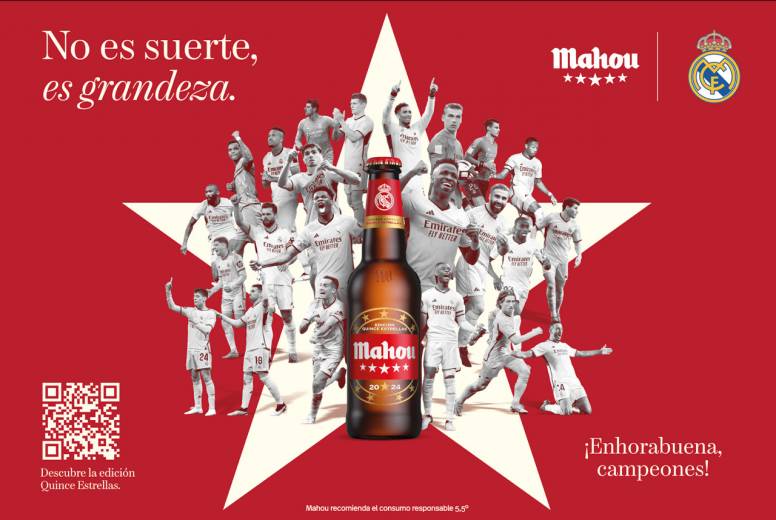 Bajo el claim, “No es suerte, es grandeza”, la marca ha creado una versión muy especial de su cerveza más icónica para el disfrute de los aficionados blancos. Los consumidores podrán conseguir esta edición limitada de 15 tercios, Mahou Quince Estrellas, registrándose en el sorteo que la marca ha puesto en marcha en la página web de Mahou y participando en el sorteo en las redes sociales de @futbomahou.