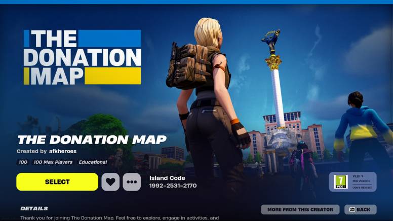 Esta iniciativa cuenta con el apoyo de Havas Play Francia y United24 -plataforma oficial de recaudación de fondos para Ucrania- y en España cuenta con la colaboración de Havas PR. Se trata de un mapa especialmente diseñado para Fortnite en el que se representa la plaza de la independencia de Kiev, que jugadores de todo el mundo pueden visitar ahora de manera virtual.