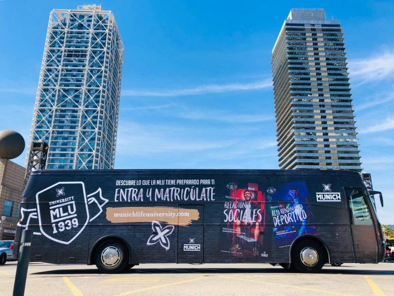 Munich encara la recta final de la campaña Munich Life University (MLU) esta semanas con diferentes activaciones en street marketing. Desde el 25 de marzo la firma de moda tiene en marcha un autobús de grandes dimensiones, de igual modo que algunos partidos políticos y asociaciones han hecho recientemente por la campaña electoral, lanzando sus proclamas ante la audiencia barcelonesa. En este roadshow,el autobús recorre las principales calles de Barcelona para llamar la atención y conseguir nuevos adeptos a la MLU. Asimismo, el autobús para en distintas universidades de Barcelona y alrededores como parte de una activación de guerrilla. Dentro del autobús quienes quieran pueden fotografiarse emulando uno de los icónicos carteles de la campaña, el del “Máster en Relaciones Sociales”. El autobús sirve también para poner en valor las becas que la firma ha impulsado e informar acerca de cómo lograrlas. La ruta puede seguirse a través de la web y el recorrido finalizará en Madrid el 1 de abril.