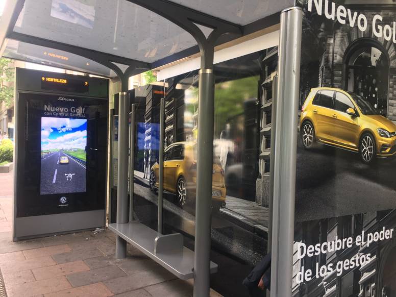 Volkswagen ha elegido las marquesinas de Madrid para desarrollar una experiencia interactiva. En concreto, permite a los usuarios probar en primera persona el control gestual del nuevo Volkswagen Golf, con el que con un movimiento de mano se pueden ejecutar acciones como cambiar de canción, subir el volumen o pasar de foto en el último modelo de la marca alemana. Gracias a la instalación de cámaras detectoras de movimiento, las marquesinas pueden interactuar con la marca y permitir que sean los propios consumidores quienes configuren a su medida los nuevos colores y llantas del nuevo VW Golf.