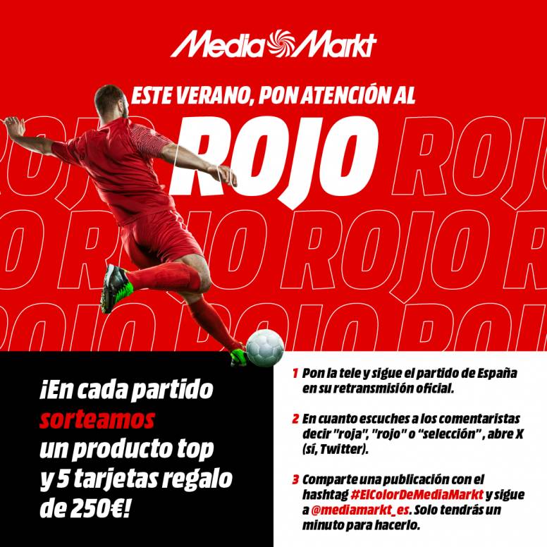 Cada vez que los comentaristas mencionasen las palabras ‘rojo’, ‘roja’ o ‘selección’ durante la retransmisión de un encuentro, los seguidores de MediaMarkt que publicasen en X con el hashtag de la acción entraban en un sorteo para ganar premios