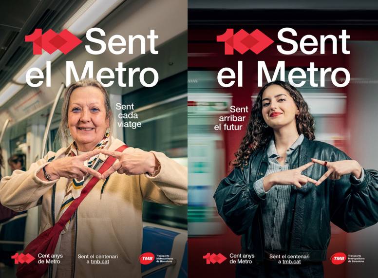 La campaña del centenario de Metro de Barcelona gira en torno a un juego de palabras con ‘cent’ (cien) y ‘sent’ (sentir) que homenajea a la red subterránea como motor de la ciudad