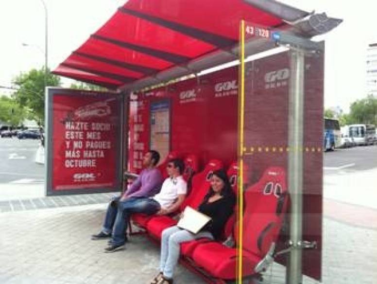 Gol Televisión instala réplicas de banquillos de fútbol en las paradas de autobuses de la capital en una acción que forma parte de la campaña ‘Saca tu fútbol’