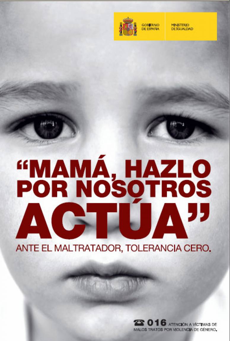 El tercer spot tiene como protagonistas a los menores que ven el maltrato en sus casas, hecho que tiene como consecuencia "alteraciones de conducta, retraso escolar, problemas de salud o conductas violentas de los niños". Los protagonistas dicen frases como: "Sólo quiero ser un niño", "no quiero tener miedo en casa", "quiero dormir tranquila, sin escuchar ni gritos ni golpes", "cateo porque no puedo estudiar" y "mamá hazlo por nosotros, actúa".