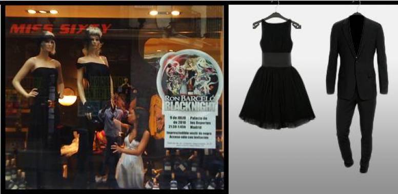 Hasta el 9 de julio el negro será el color predominante en los escaparates de las tiendas de Energie en Fuencarral y Miss Sixty en la calle Mesoneros romanos de Madrid. Se trata de una acción de cobranding entre ambas marcas de moda que se suman a Ron Barceló Blacknight customizando sus escaparates la semana de la fiesta. Los maniquíes vestirán de riguroso negro, requisito imprescindible para asistir a la fiesta de Barceló. Además los escaparates han sido vinilados con la imagen de Ron Barceló Blacknight para promocionar el evento.
