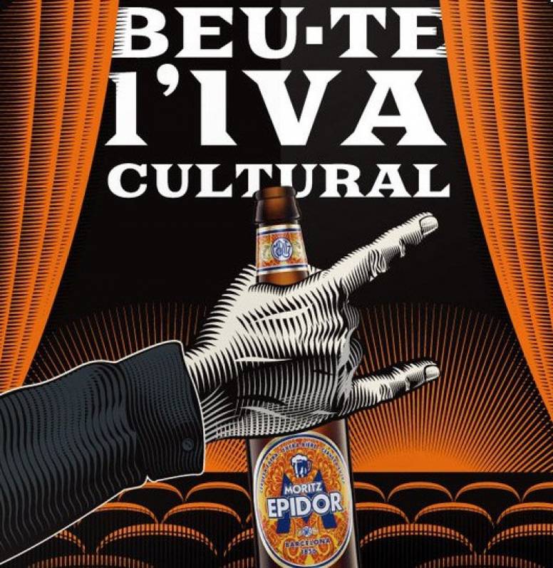 La marca Moritz Epidor, vinculada estrechamente con el mundo de la cultura, se ha levantado contra el IVA cultural en una de las primeras acciones de su nuevo reposicionamiento. Con el slogan Pueden obligarte a pagar el IVA cultural pero no pueden evitar que te lo bebas, del 10 al 14 de abril todos aquellos que hayan ido al cine o al teatro en el fin de semana del 9 y el 10 podrán tener la satisfacción de ver devuelto el IVA cultural de sus entradas, cambiándolo por una caña de Epidor que recibirán en la Fábrica Moritz Barcelona.