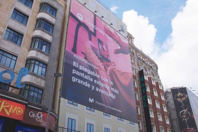 Marca y agencia han focalizado la generación de notoriedad en las entradas de la ciudad y las principales arterias que cruzan el corazón de Madrid, con el propósito de mostrar al mundo las características diferenciales del motorola razr 40 ultra, entre las que sobresale la pantalla externa más grande del mercado de los smartphones plegables.