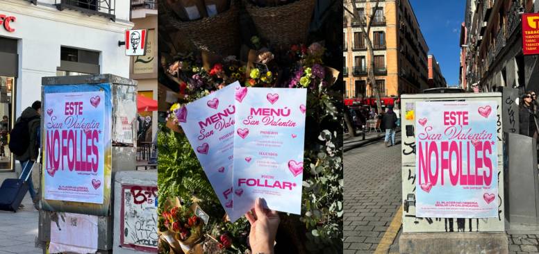 La campaña de expetiores ha empapelado Madrid durante los días previos a San Valentín con el lema en grande. Al leer la letra pequeña, los curiosos que se acercaron a los carteles, pudieron leer ‘no folles solo porque toca’.