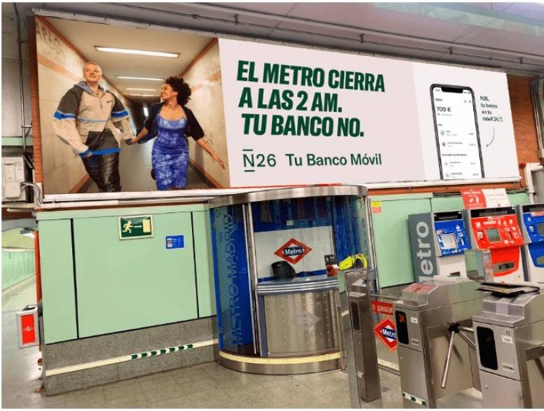 Como acción más llamativa, N26 ha brandeado en su totalidad la estación de Metro Madrid de Ciudad Universitaria, y también estará presente en circuito de marquesinas y en el interior de las facultades. Asimismo, ha activado una campaña de wild postering y flyers en cerca de 20 residencias universitarias y colegios mayores de la zona para ofrecer a los estudiantes un año gratis de su cuenta N26 Smart.