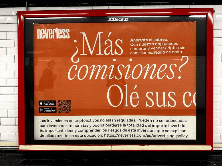 Rita Riera, directora creativa y de marketing de Neverless, comenta sobre la estrategia creativa: “Queríamos conectar directamente con la realidad del consumidor, sin rodeos, hablando como lo hace en su monólogo interno cuando siente que le toman el pelo. Nuestra campaña refleja esa frustración que todos hemos vivido. Incluso quienes nunca han invertido o no entienden de cripto o finanzas 2.0 pueden decir: 'Estoy hasta los co**** de las comisiones’”.