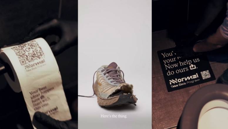 La acción se articula en torno al programa ‘Take Back Box’, la iniciativa de la compañía para recoger y reciclar sus zapatillas al final de su vida útil. Para ello, NNormal intervino los baños con elementos como rollos de papel higiénico y alfombrillas, ambos personalizados con mensajes directos y códigos QR. Estos invitaban a los corredores a detenerse unos segundos, reflexionar sobre el impacto ambiental del material deportivo y conocer de forma sencilla cómo devolver sus zapatillas usadas para su reciclaje.