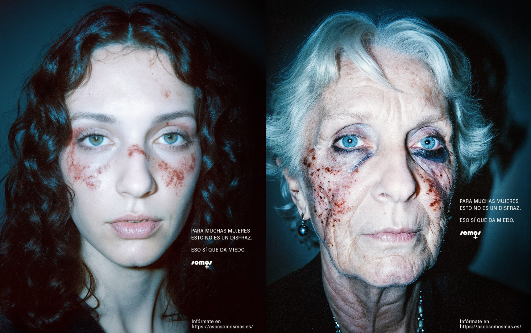 Los creativos Mario Añibarro y Paula Núñez, junto a la asociación Somos Más, lanzan una acción gráfica que se apoya en el imaginario de Halloween para llamar la atención sobre una realidad cotidiana como es la violencia machista que sufren miles de mujeres en España