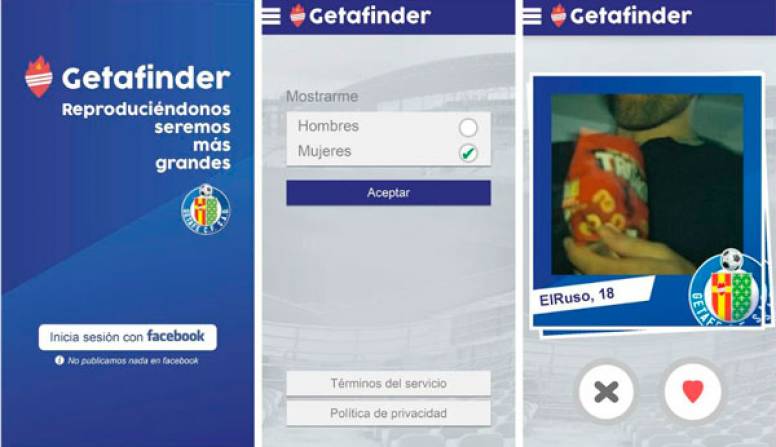 Para ello el club ha lanzado Getafinder, una app para ligar y procrear – al estilo de la popular Tinder – pero que sólo funcionará dentro de las instalaciones del estadio. Un sistema de geolocalización limitará la funcionalidad de la app al entorno del Coliseum, con la intención de que sea utilizada solo por seguidores del club. "El objetivo es fomentar las relaciones “amorosas” entre aficionados azulones, especialmente entre los más jóvenes", señalan desde la agencia de publicidad responsable del desarrollo, El ruso de Rocky. "Porque, como indica su lema, “Siendo más, seremos más grandes”.
