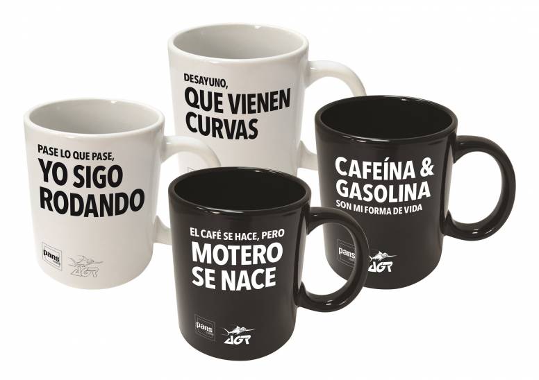 En esta ocasión, por la compra de un Menú Grande y por 1€ más, los clientes podrán obtener una taza de diseño exclusivo con mensajes que combinan la pasión por el café y las motos. “El café se hace, pero motero se nace”, “Cafeína & gasolina son mi forma de vida”, “Pase lo que pase, yo sigo rodando” y “Desayuno, que vienen curvas” son las cuatro variedades de tazas moteras disponibles de Pans & ARG Team.