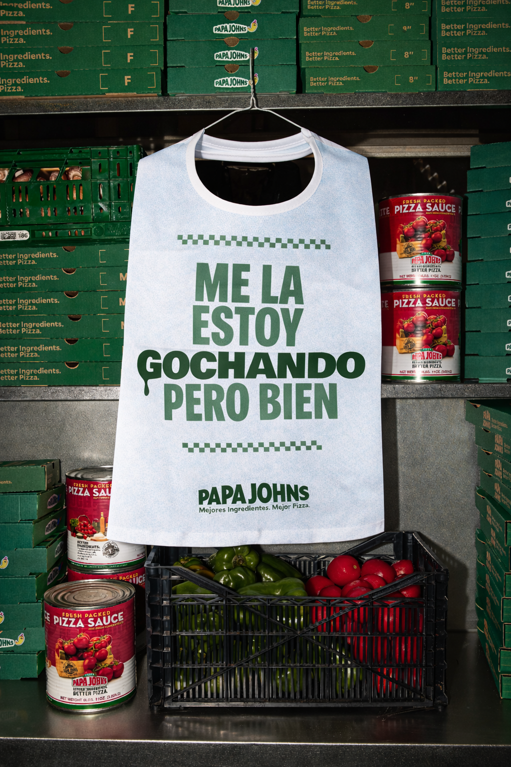 La activación va un paso más y con cada pedido de la Gochona Cheddar&Rings, Papa Johns entrega un babero diseñado específicamente para esta acción, disponible en todos los restaurantes de la marca en España hasta fin de existencias. Un objeto exagerado que convierte el acto de comer la pizza en una experiencia compartible y refuerza el tono desenfadado de la campaña, además de facilitar su amplificación en redes sociales.
