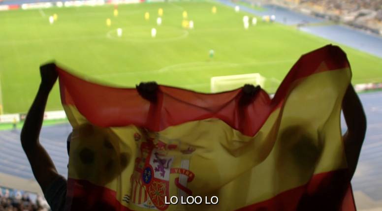 A través de un video, el cual el diario difundirá en redes sociales, se muestra a varios grupos de aficionados agitando las banderas de sus respectivos países y cantando el himno correspondiente. Incluido un grupo de españoles que aparecen entonando el popular ‘Lololo lolololo lo lo...’, cuya imagen da paso al cierre de la pieza: ‘Sobran las palabras. ¡Vamos España!’.