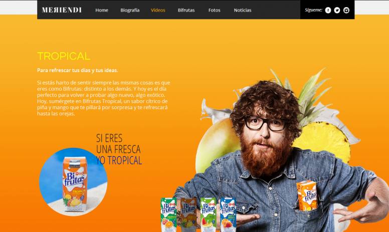 Bifrutas, marca de zumos naturales enriquecidos perteneciente al grupo Pascual, ha decidido promocionar la carrera musical de Meriendi, un nuevo cantante que busca el éxito con letras descaradas, irónicas y llenas de referencias al día a día de los jóvenes españoles: redes sociales, amor, sexo, ligoteo y superficialidad, entre otros temas. En realidad se trata de un personaje ficticio creado por la agencia La Despensa, que comienza a trabajar para la marca, con el obejtivo de crear una nueva línea de comunicación y estrategia para diferenciarse del resto de marcas del sector y competidores.