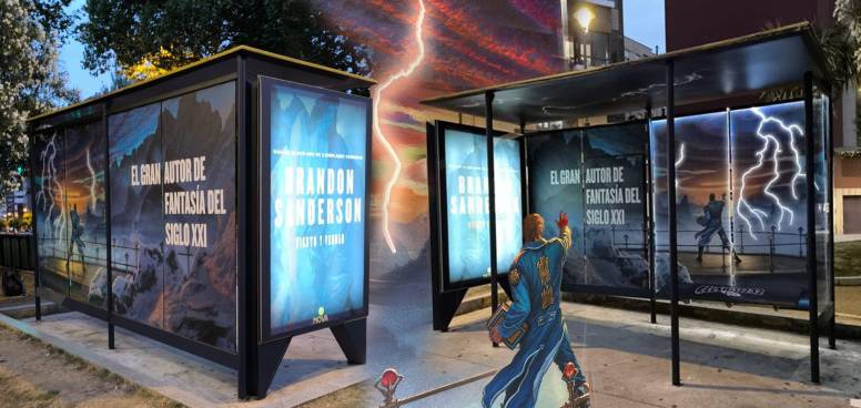 Coincidiendo con la presencia del escritor Brandon Sanderson en el Festival Celsius 232 de Avilés, Penguin Random House ha puesto en marcha una acción especial de publicidad exterior que convierte una marquesina en un soporte experiencial. La intervención, desarrollada junto a su agencia de medios Carat, Dentsu Story Lab y HYPE (la unidad de acciones especiales de Exterior Plus), simula una tormenta mágica con rayos y efectos lumínicos inspirados en el universo de la saga ‘El Archivo de las Tormentas’.