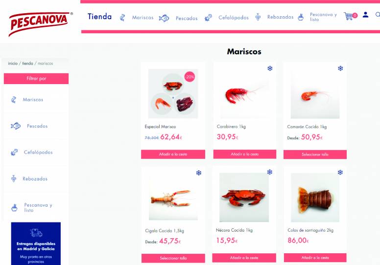 La marca española Pescanova, especializada en productos del mar, ha apostado pro la venta directa a sus consumidores y seguidores a través de su propia tienda online. La plataforma, ubicada en su web corporativa (www.pescanova.es/tienda) tiene el objetivo de acercar los productos del mar a los hogares españoles respondiendo a las nuevas necesidades de los consumidores, según detallan sus responsables mediante comunicado oficial: "Gracias a este nuevo servicio de e-commerce, podrán comprar los productos congelados más especiales de la marca y que no se pueden encontrar fácilmente en el canal de distribución, como es el caso de los carabineros, cigalas, camarones, nécoras, colas de Santiaguiño, almejas, gambas rojas peladas, entre otros", detallan.