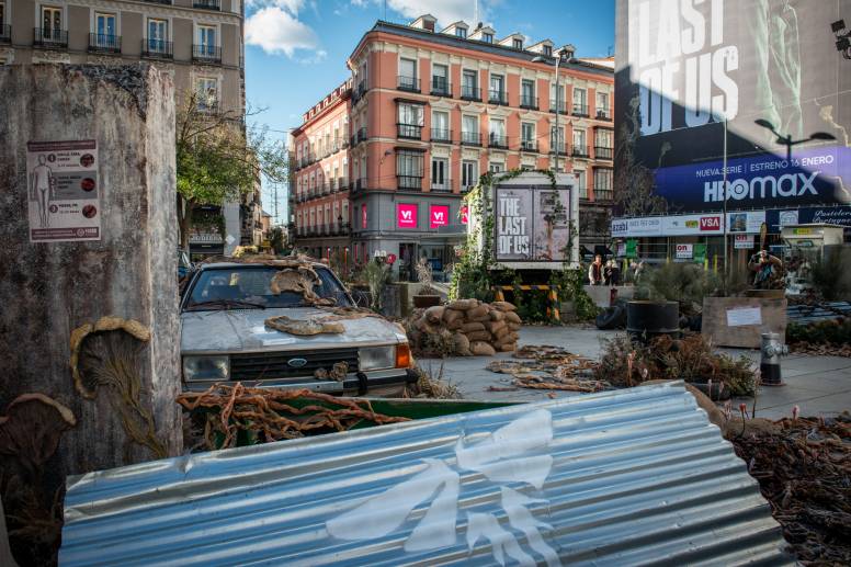 A partir del viernes 20 y hasta el 24 de enero, en la Plaza Callao de Madrid los paseantes tendrán la ocasión de entrar en el mundo postapocalíptico de la serie “The Last of Us”, donde las ciudades abandonadas están cubiertas de una vegetación invasiva. La gente podrá toparse con personajes de este universo postapocalíptico en una ciudad en ruinas, colonizada por la naturaleza y dominada por un hongo que ha acabado con la civilización.