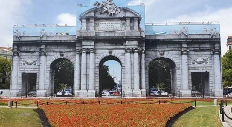 Sundisa ha llevado a cabo un complejo proceso de producción e instalación para inmortalizar la Puerta de Alcalá sobre una lona de gran formato, cubriendo el andamio exterior colocado por trabajos de restauración. El resultado es una imagen de calidad superior, una recreación exacta a partir de una veintena de fotografías en alta resolución de 2.200 metros cuadrados de superficie que, observada a cierta distancia, parece la puerta original.