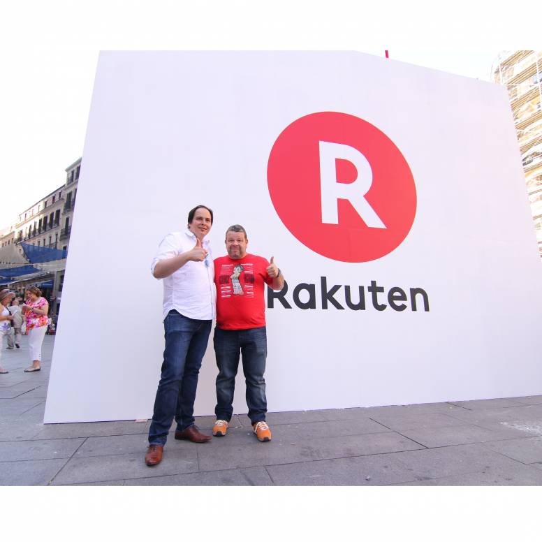 La Plaza de Callao será durante tres días el escenario de Rakuten.es, donde los peatones podrán acercarse y concursar, e incluso conseguir vales de 500 euros para gastar en la plataforma de ecommerce. Durante la primera jornada Marc Vicente, CEO la firma, junto con el chef Alberto Chicote, ha soplado las velas de la tarta que festeja el primer aniversario del marketplace en España.