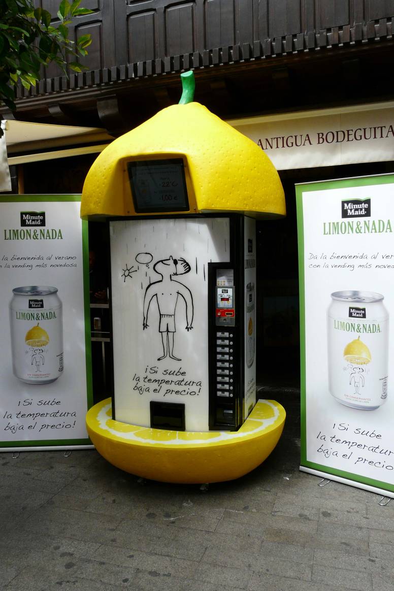 La marca Limón & Nada (Coca-Cola España) vuelve a apostar por sus peculiares máquinas expendedoras que rebajan el precio del producto en función de la temperatura a la que el usuario esté expuesto. La tecnología que incorporan estas máquinas de vendeing identifica el cambio de temperatura, se conecta con el monedero y modifica el precio.